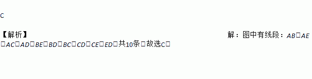 C 【解析】【解析】 图中有线段:AB,AE,AC,AD;BE,BD,BC;CD;CE,ED.共10条.故选C.