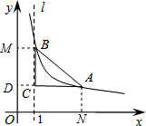 分析:过点B作BM⊥y轴于点M,过点A作AN⊥x轴于点N,延长AC交y轴于点D,设点C的坐标为(1,y),根据反比例函数上的点向x轴y轴引垂线形成的矩形面积等于反比例函数的k值是个定值作为相等关系求得y值后再求算k值.