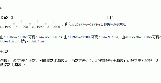 若四个有理数a,b,c,d满足,则a,b,c,d的大小关系是( )
