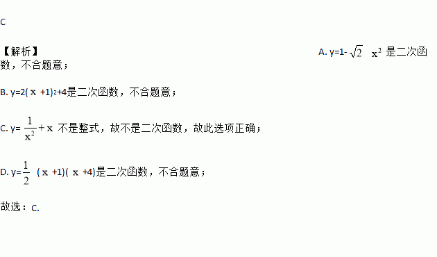 下列函数中,不是二次函数的是 ( )
