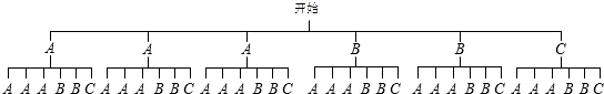 在一个不透明的盒子里,装有3个写有字母A、2个写有字母B和1个写有字母C的小球,它们的形状、大小、质地等完全相同,先从盒子里随机取出一个小球,记下字母后放回盒子,摇匀后再随机取出一个小球,记下字母.请你用画树状图或列表的方法,求摸出的两个小球上分别写有字母B、C的概率.