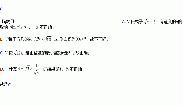 有意义的x的取值范围是x>-3 B. 若正方形的边长为
