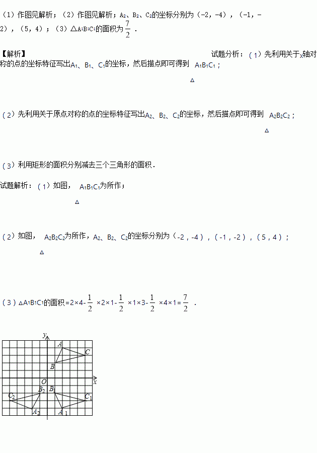 (3)假设每个正方形网格的边长为1,求⊿A1B1C1.的面积。