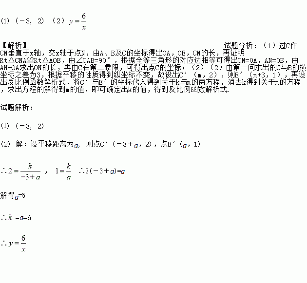(2)将△ABC沿x轴正方向平移得到△A′ B′C′,且B,C两点的对应点B′,C′恰好落在反比例函数