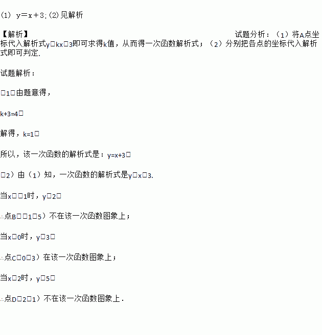 (2)试判断点B(-1,5),C(0,3),D(2,1)是否在这个一次函数的图象上.