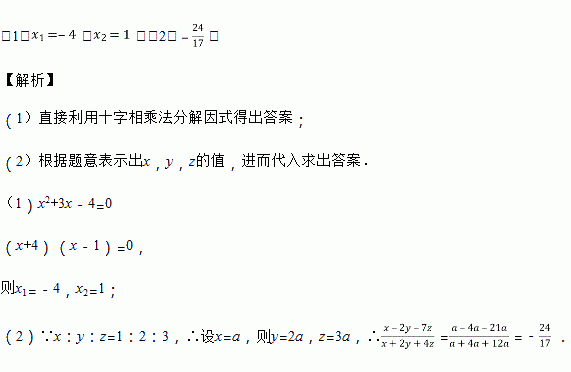(1)解方程:方程x2+3x﹣4=0;(2)已知x:y:z=1:2:3,求的值.