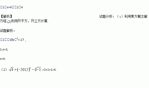 (1)求x的值:(1﹣x)3=-27;