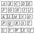 如图所示,进行“找宝”游戏,如果宝藏藏在(3,3)字母牌的下 面, 那么应该在字母______下寻找。
