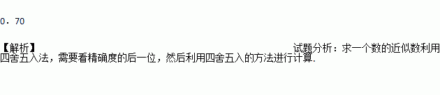 把0.697按四舍五入法精确到0.01的近似值是 .