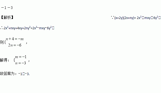 若(x+2y)(2x+ny)=2x2-mxy-6y2,则m=_______,n=_______.
