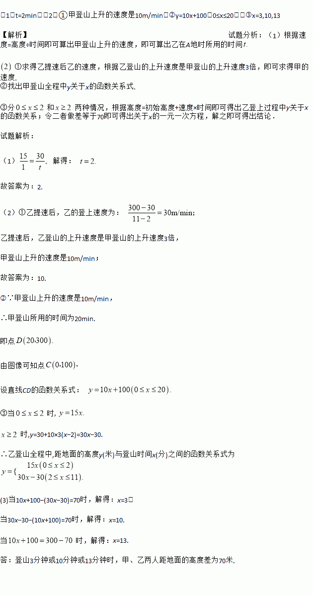 ①则甲登山的的上升速度是 m/min;