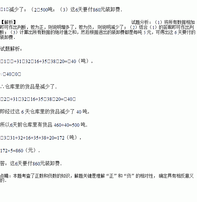 (3)如果进出的装卸费都是每吨 5 元,那么这 6 天要付多少元装卸费?