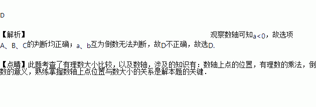A. a<0 B. ab<0 C. a<b D. a,b互为倒数