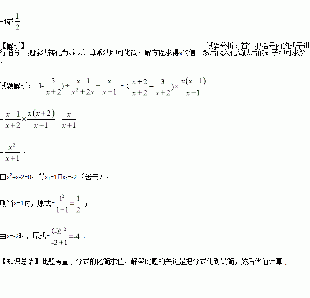 先化简,再求值: ,其中x满足x2+x﹣2=0.