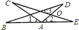 分析:已知AD=AE,AB=AC,∠1=∠2=30°,可证得△BAD≌△CAE.从而求得∠3的度数.