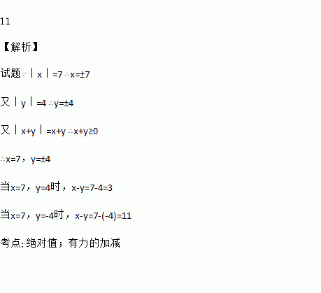 若有理数x、y满足|x|=7,|y|=4,且|x+y|=x+y,求x﹣y的值.