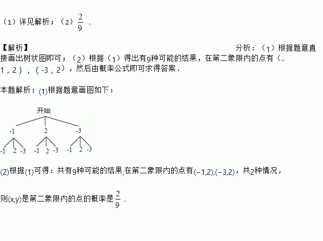 一只不透明的袋子中,装有三个分别标记为“-1”、“2”、“ -3”的球,这三个球除了标记不同外,其余均相同.搅匀后,从中摸出一个球,记录球上的标记为