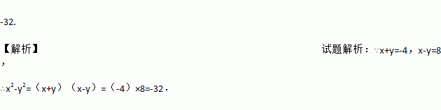 如果x+y=-4,x-y=8,那么代数式x2-y2的值是 .