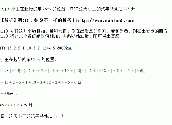 升/千米,这天小王的汽车共耗油多少升?![]()