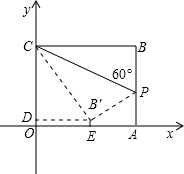 分析:要求B′点的坐标,需求B′D,CD的值,需先由折叠的性质求得B′C=BC=4,∠B′CP=∠BCP=30°,所以∠DCB′=30°,再利用相关角的三角函数来求出B′的坐标.