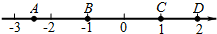 如图,数轴上有A、B、C、D四点,其中表示互为相反数的两个实数所对应的点是( )