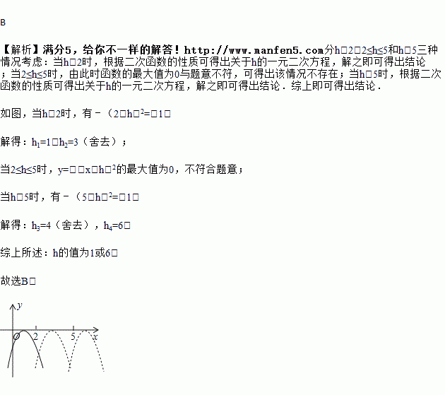 已知二次函数y=﹣(x﹣h)2(h为常数),当自变量x的值满足2≤x≤5时,与其对应的函数值y的最大值为﹣1,则h的值为( )