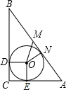 设Rt△ABC的内切圆的半径为r,则OD=OE=r,∠C=90°,