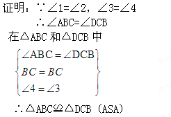 如图,已知∠1=∠2,∠3=∠4,求证:△ABC≌△DCB