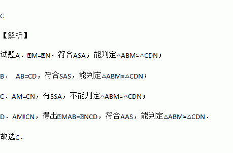 A. ∠M=∠N B. AB=CD C. AM=CN D. AM∥CN