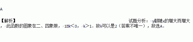 在双曲线的任一支上,y都随x的增大而增大,则k的值可以是( )