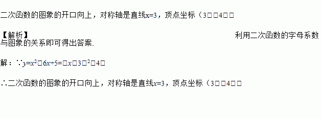 已知二次函数的表达式为:y=x2﹣6x+5,求该二次函数图象的开口方向、对称轴和顶点坐标.