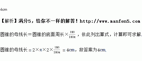 如图,一个圆锥的底面半径为,侧面展开图是半圆.则圆锥的母线长为________.![]()