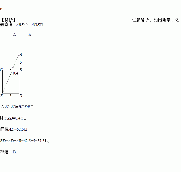 A. 1.25尺 B. 57.5尺 C. 6.25尺 D. 56.5尺
