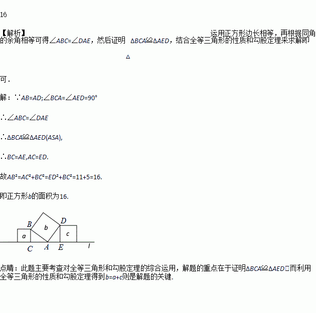 如图,直线上有三个正方形,若的面积分别为5和11,则的面积为__________.