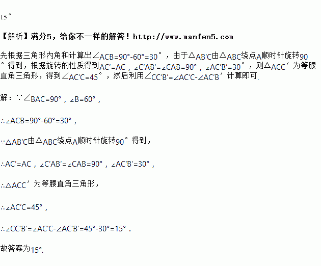 如图,在中,,,可以由绕点顺时针旋转得到(点与点是对应点,点与点是对应点),连接,则的度数是________.