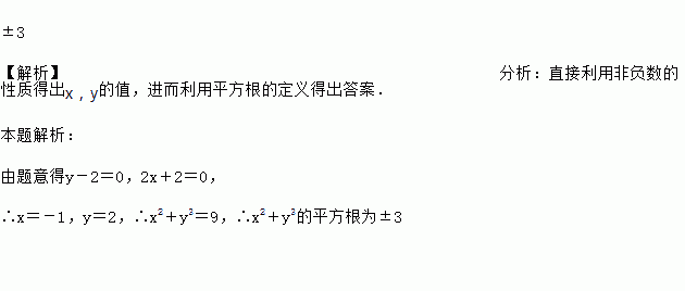 已知x,y是实数,且(y-2)2与互为相反数,求x2+y3的平方根.