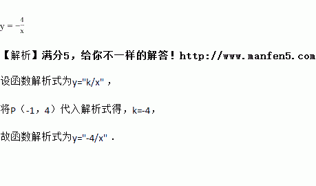 若反比例函数的图象经过点P(-1,4),则它的函数关系式是______.