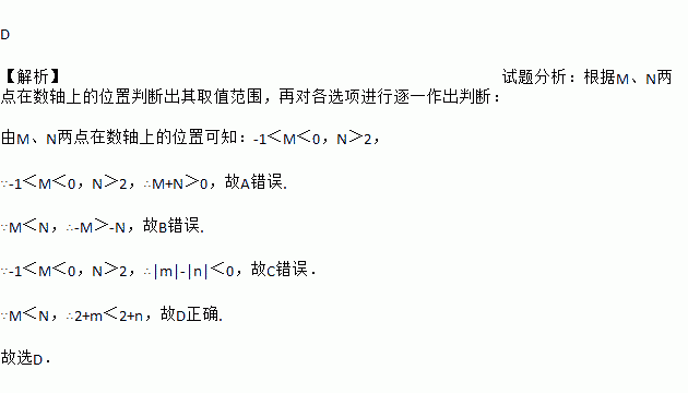 如图,M,N两点在数轴上表示的数分别是m,n,则下列式子中成立的是( )