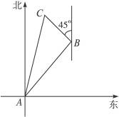图9-44,在一次实践活动中,小兵从A地出发,沿北偏东45°方向行进了5