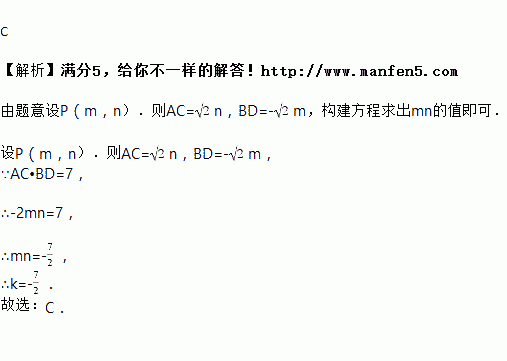 (k≠0,x<0)图象上一点,过点P作y轴的垂线交直线AB交于C,作PD⊥PC交直线AB于D,若AC•BD=7,则k的值为( )