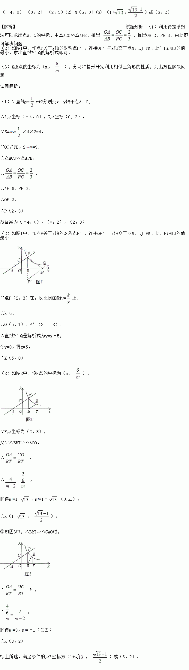 的图象上,且在直线PB的右侧,做RT⊥x轴,T为垂足,当△BRT与△AOC相似时,求点R的坐标.