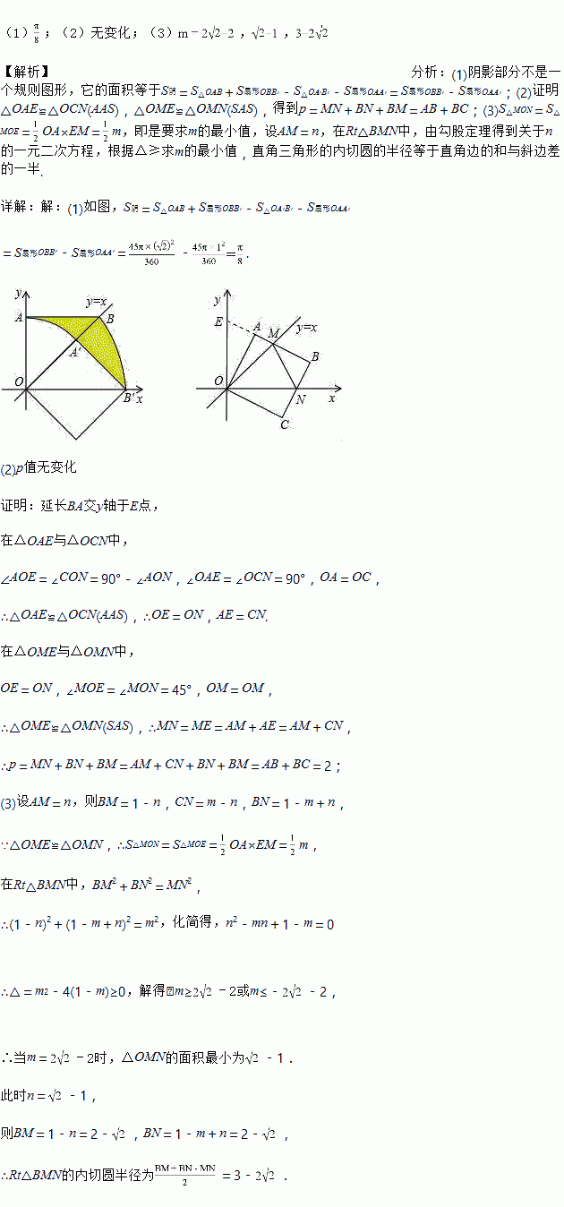 (3)设MN=m,当m为何值时△OMN的面积最小,最小值是多少?并直接写出此时△BMN内切圆的半径.