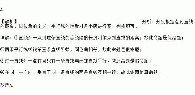 下列语句:①直线外一点到这条直线的垂线段叫做点到直线的距离;②若两条直线被第三条截,则内错角相等;③过一点有且只有一条直线与已知直线平行,