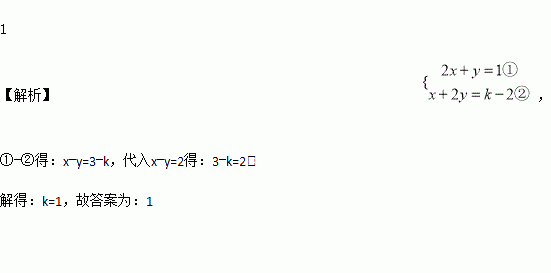 已知方程组的解满足x-y=2,则k的值是_______.