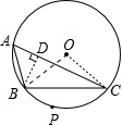 分析:四过边形OABP的周长为OA+AB+BP+OP,在这四条线段中OA、OC是半径是定值,AB是定值5,故周长要想最大,则BP的值最大,其位置应在点C处,即求得BC的长为BP的最大值.过点B作BD⊥AC于D,连接OB,OC,先根据直角三角形ABD求出BD的长,再根据直角三角形BDC求出BC的长,根据圆周角和圆心角之间的关系可求得△OBC是等腰直角三角形,可求出半径的长,从而求得四边形的最大周长.