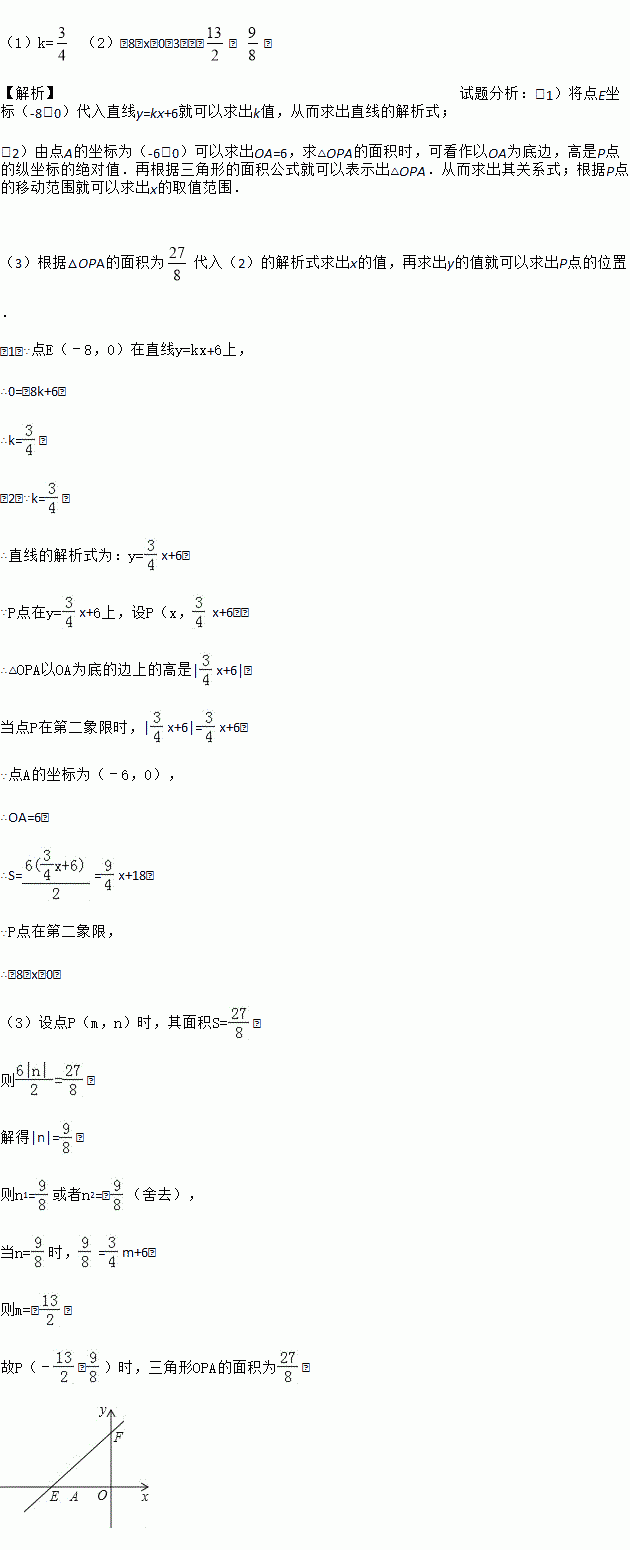 如图,直线y=kx+6与x轴、y轴分别交于点E、F,点E的坐标为(﹣8,0),点A的坐标为(﹣6,0).