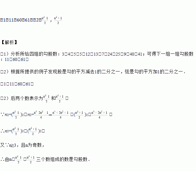 观察:3,4,5;5,12,13;7,24,25;9,40,41;……发现这些勾股数的勾都是奇数,且从3起就没有间断过.