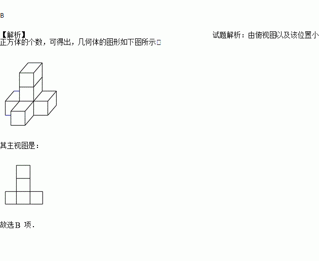 如图是几何体的俯视图,所表示数字为该位置小正方体的个数,则该几何体的主视图是( ).