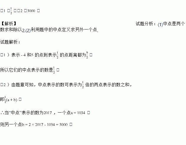 在数轴上,我们把到两个点距离相等的点,叫做这两个点的“中点”,例如: