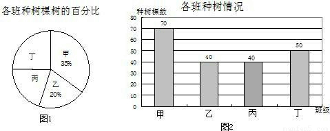 ºìÐÇÖÐѧ¿ªÕ¹ÁË¡°ÂÌ»¯¼ÒÏ磬ֲÊ÷ÔìÁÖ¡±»î¶¯£¬²¢¶Ô¸ÃУµÄ¼×¡¢ÒÒ¡¢±û¡¢¶¡Ëĸö°à¼¶ÖÖÊ÷Çé¿ö½øÐÐÁË¿¼²ì£¬²¢½«ÊÕ¼¯µÄÊý¾Ý»æÖÆÁËͼ1ºÍͼ2Á½·ùÉв»ÍêÕûµÄͳ¼ÆÍ¼£®Çë¸ù¾ÝͼÖÐÌṩµÄÐÅÏ¢£¬Íê³ÉÏÂÁÐÎÊÌ⣺
